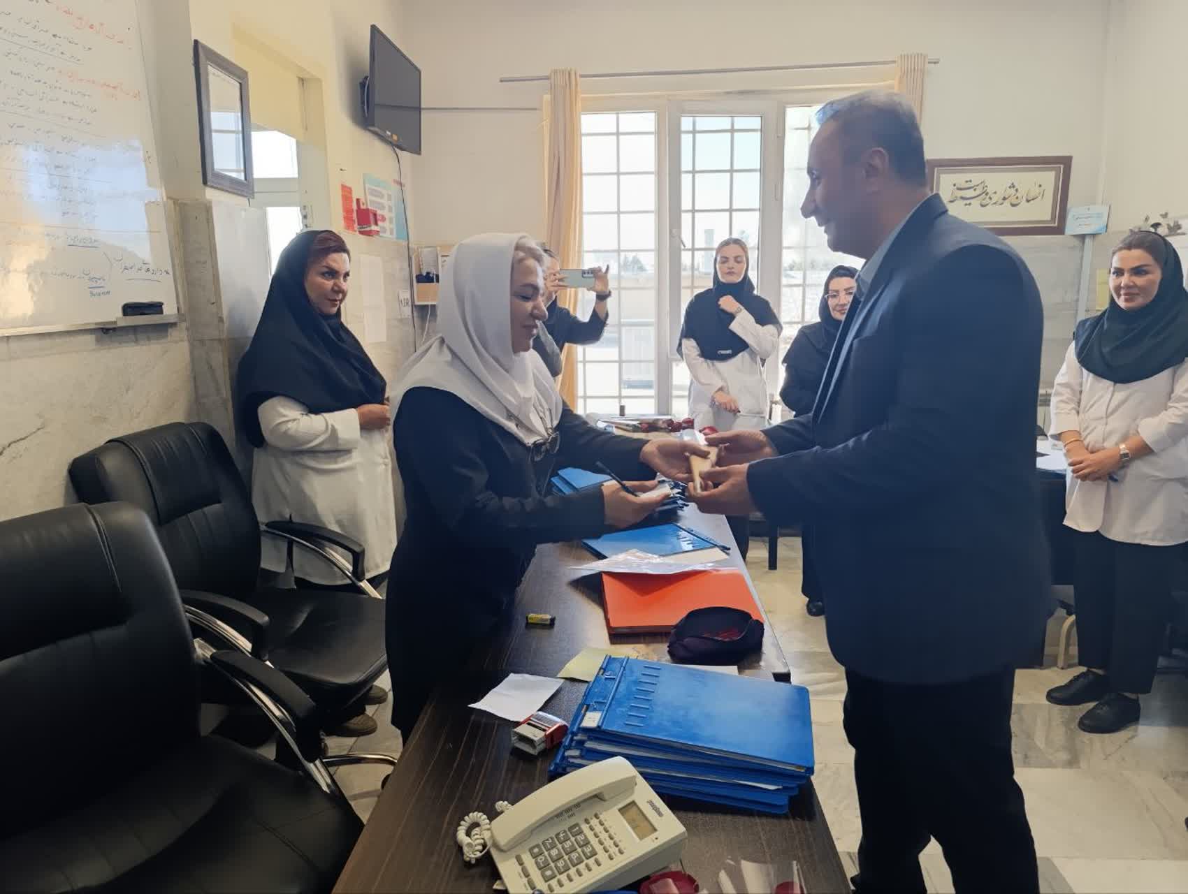بازدید صمیمی معاونت دانشجویی و معاونت پژوهشی همراه ریاست بیمارستان و دفتر پرستاری از بخش های بیمارستان از تلاش و فداکاری پرستاران با اهدای شاخه گل و شیرینی تقدیر و تشکر به عمل آمد .