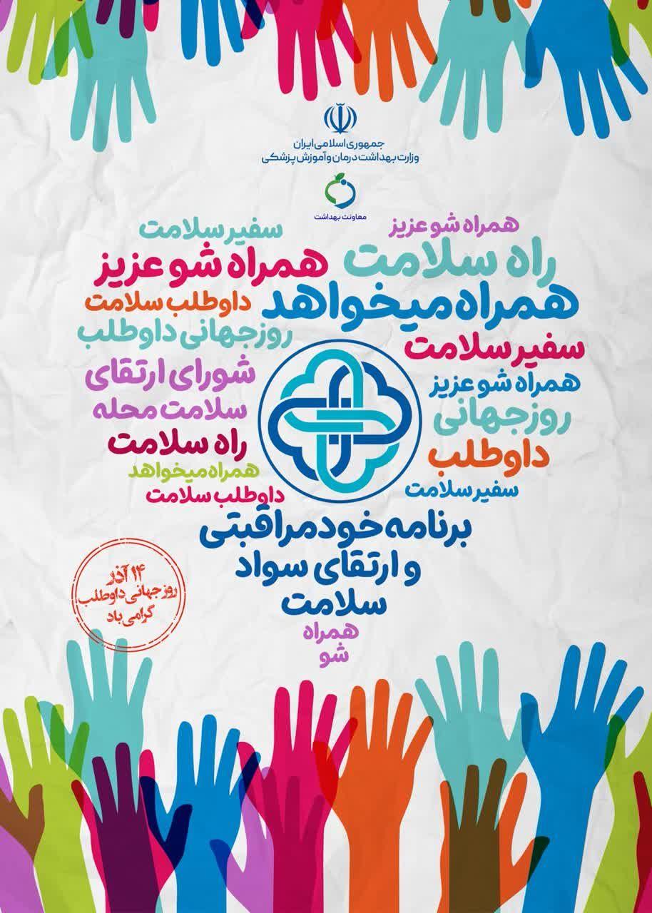 اینجانب ضمن گرامیداشت روز جهانی داوطلب سلامت، از زحمات تک تک داوطلبین عزیز در سطح خانوارها و محلات، ادارات، مدارس، دانشگاه ها و دیگر موقعیت ها، چه در سطح شهر و چه در سطح روستا، که در مسیر سلامتی همراه و یاور ما هستند تشکر و قدر دانی می نمایم و سلامتی همگان را از حق تعالی خواستارم.