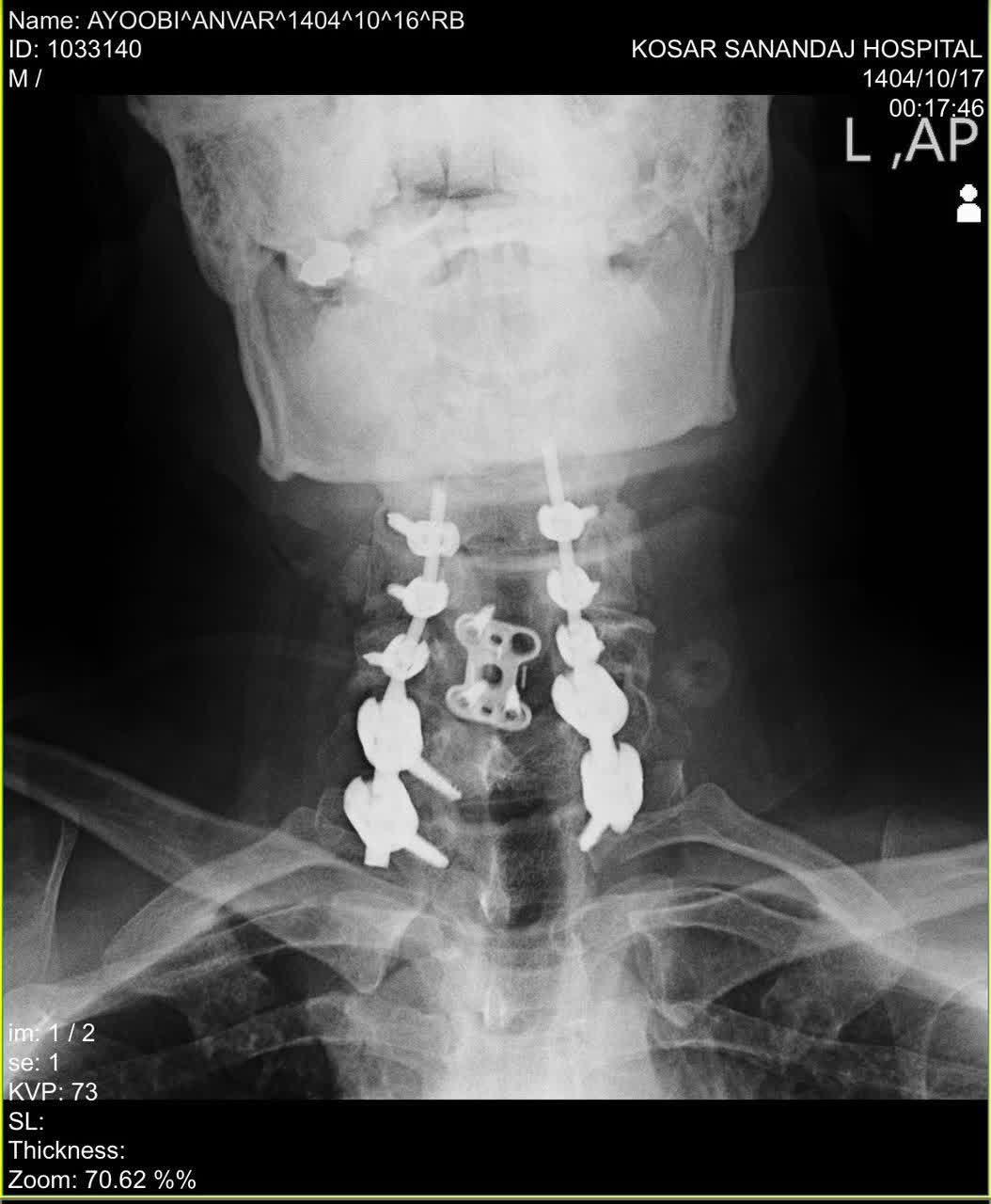 به گزارش روابط عمومی دانشگاه علوم پزشکی کردستان، دکتر روزبه محمدی در تشریح جزئیات این جراحی پیچیده اظهار داشت: بیمار مرد ۴۴ سالهای بود که با وضعیت اورژانسی ناشی از یک تروما و آسیب شدید گردنی به بیمارستان کوثر سنندج اعزام شده بود. بررسیهای تصویربرداری نشاندهنده مجموعهای از آسیبهای بحرانی بود؛ از جمله شکستگی مهره هفتم گردنی دررفتگی و قفل شدگی مفاصل فاست در سطح مهرههای ششم و هفتم گردنی همچنین پارگی traumatic دیسک بین مهرهای در سطح مهره پنجم و ششم گردنی این مجموعه آسیب، ستون فقرات گردنی را بشدت ناپایدار کرده و کانال نخاعی را تحت فشار خطرناکی قرار داده بود.